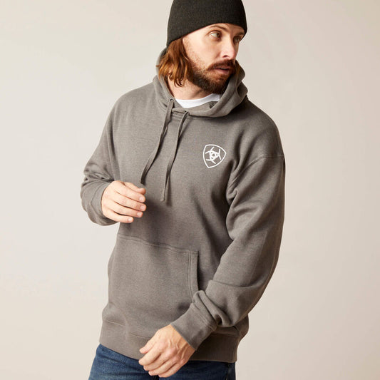 ARIAT MEN'S HEX HORNS HOODIE LIGHT GREY HEATHER