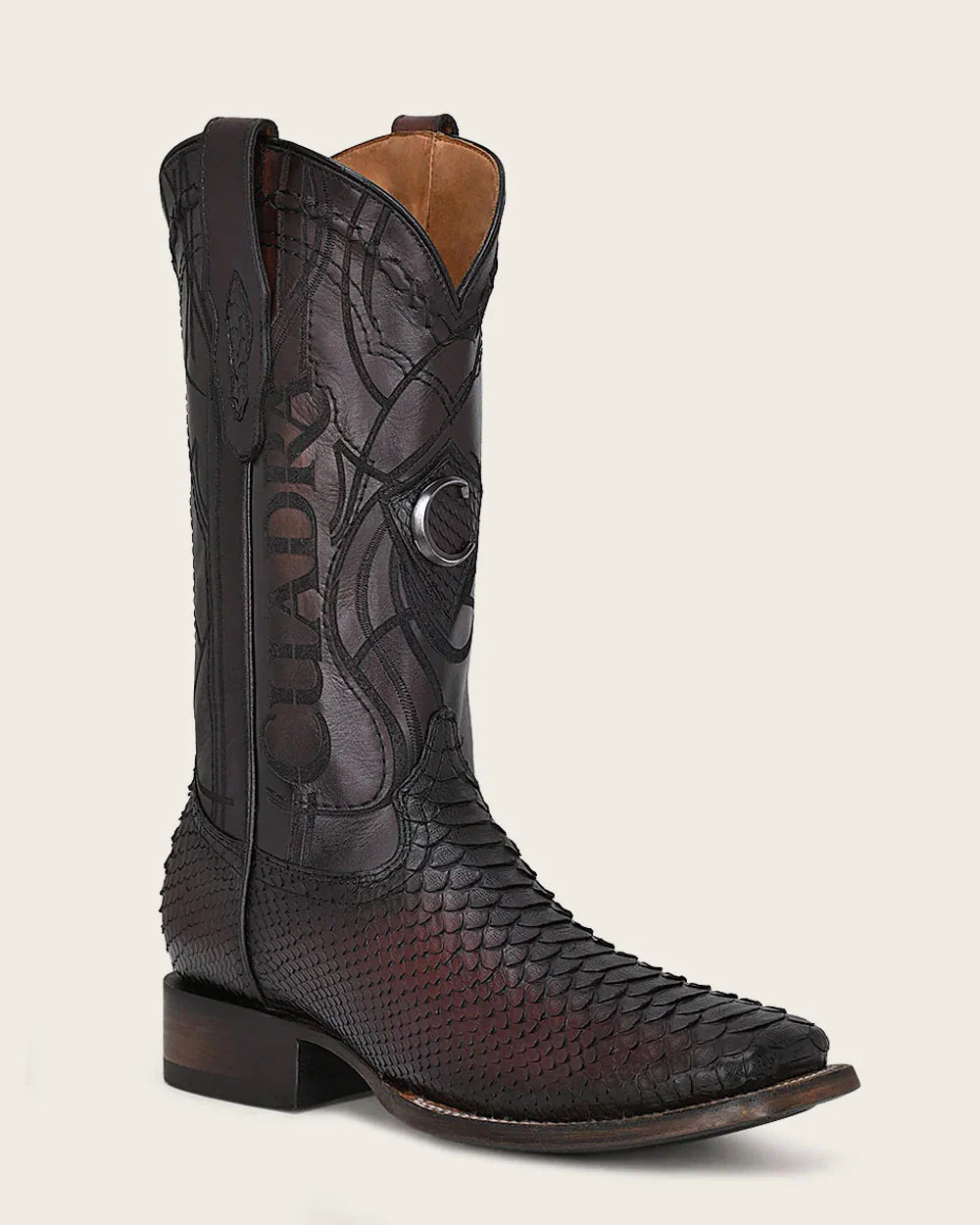 CUADRA MENS ENGRAVED MAHOGANY PYTHON LEATHER COWBOY CU746