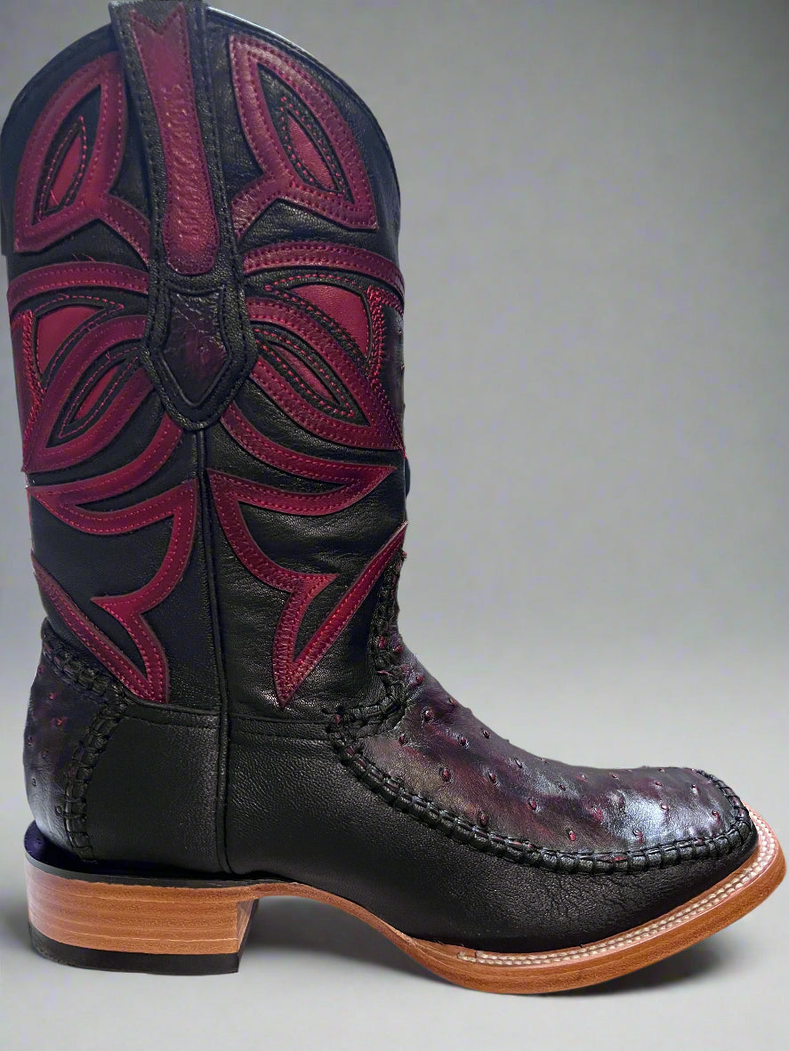LOS ALTOS Men's Square Toe Black Cherry Ostrich Boots