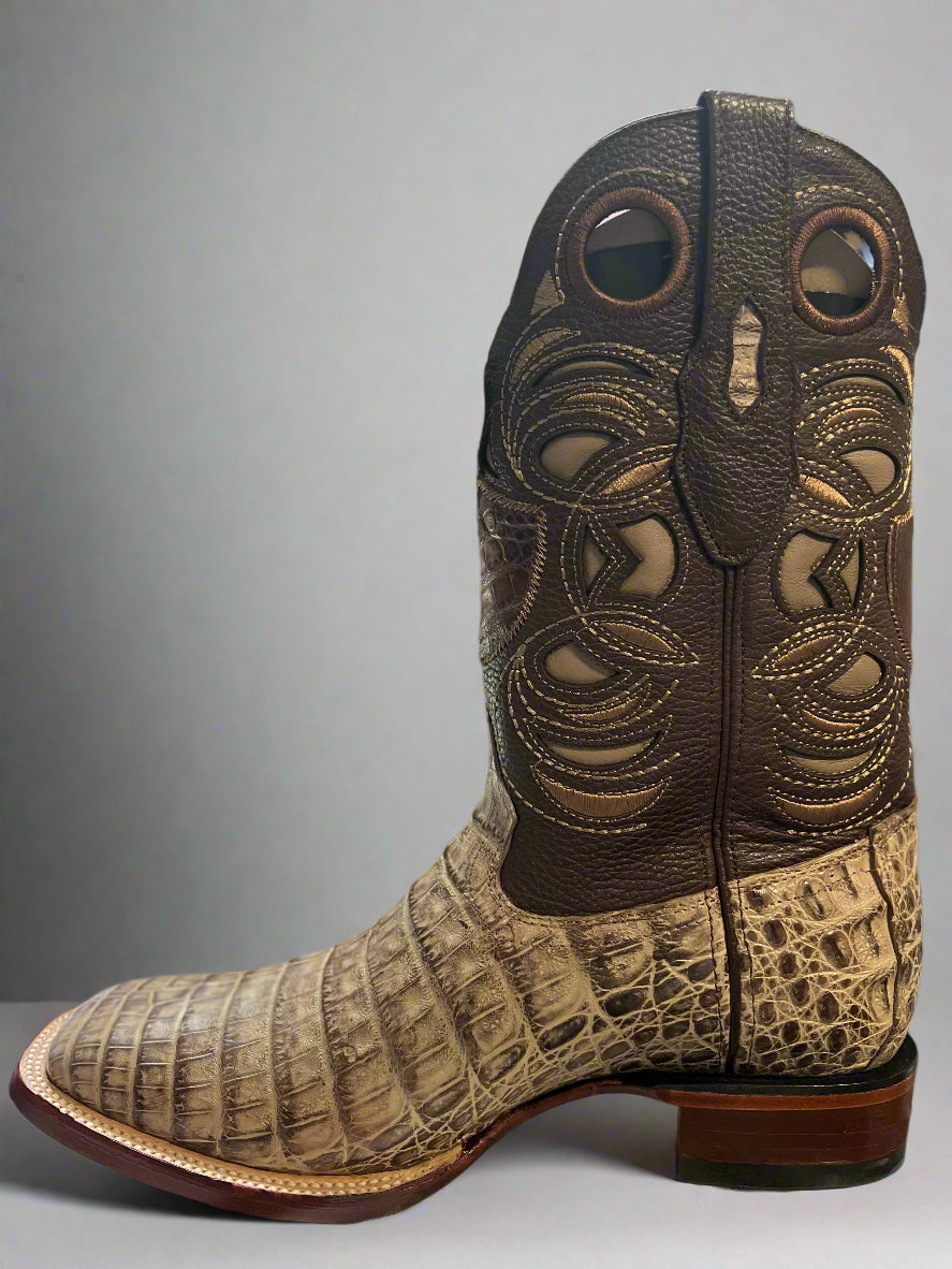 WILD WEST Men's Mocha Caiman Belly Square Toe Boot