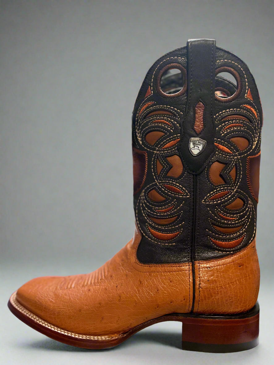 WILD WEST Men's Smooth Honey Ostrich Square Toe Boots