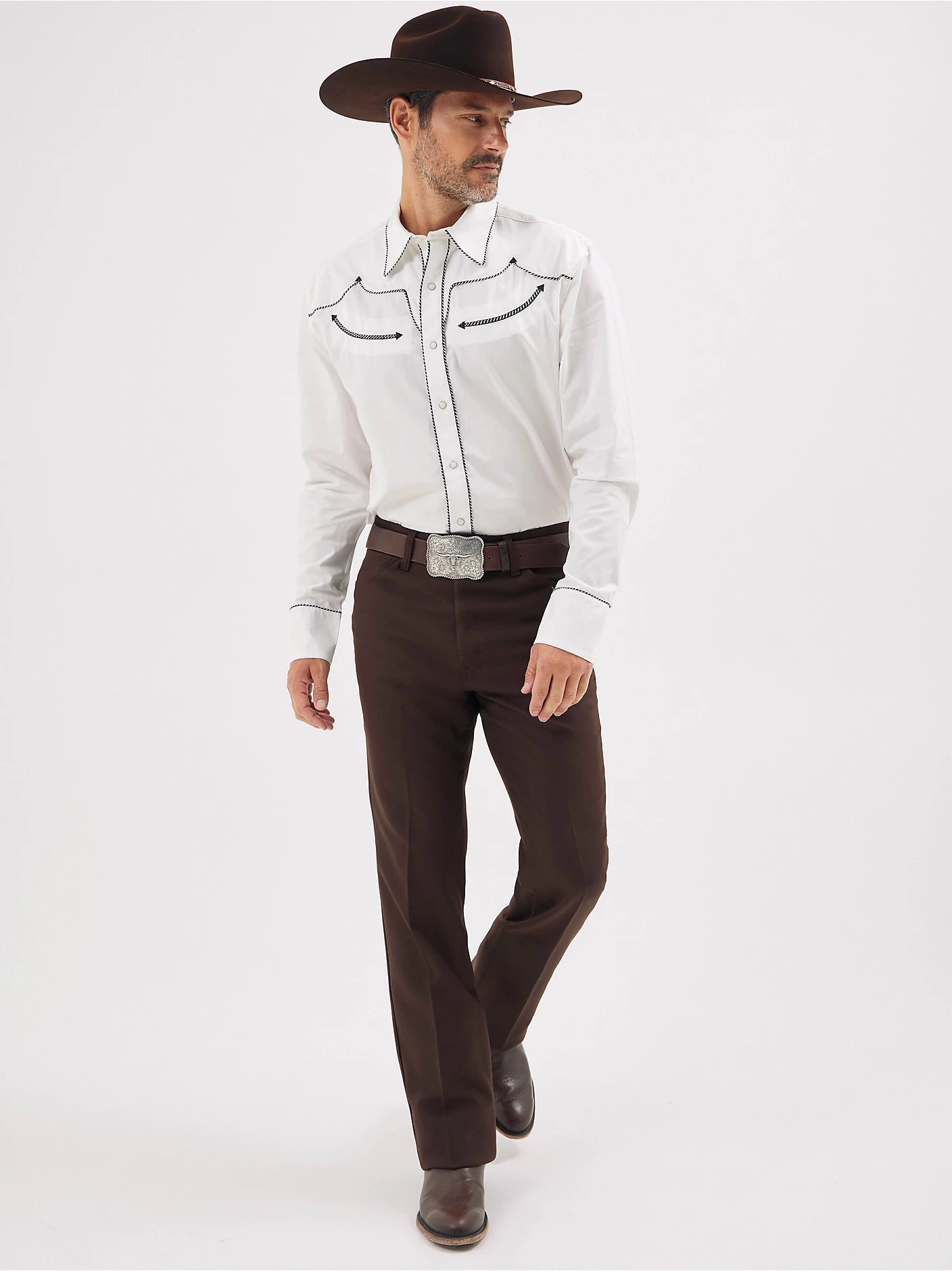 As every cowboy knows all too well, the day doesn't always go as planned. When you need to be dressed up and out of the house in a hurry, Wrangler® dress jeans are your greatest ally. Our men's Wrancher® dress pants feature a slim fit with modern styling and are made of 100% texturized, woven polyester twill to keep you comfortable on all occasions. Plus, they come with plenty of pocket space for storing your essentials. Best of all, the Wrancher for men features a soil release finish to keep stains from spoiling the fun. With Wrangler® dress jeans, you can keep your cowboy credentials while looking polished and put together, ready for anything the day brings.